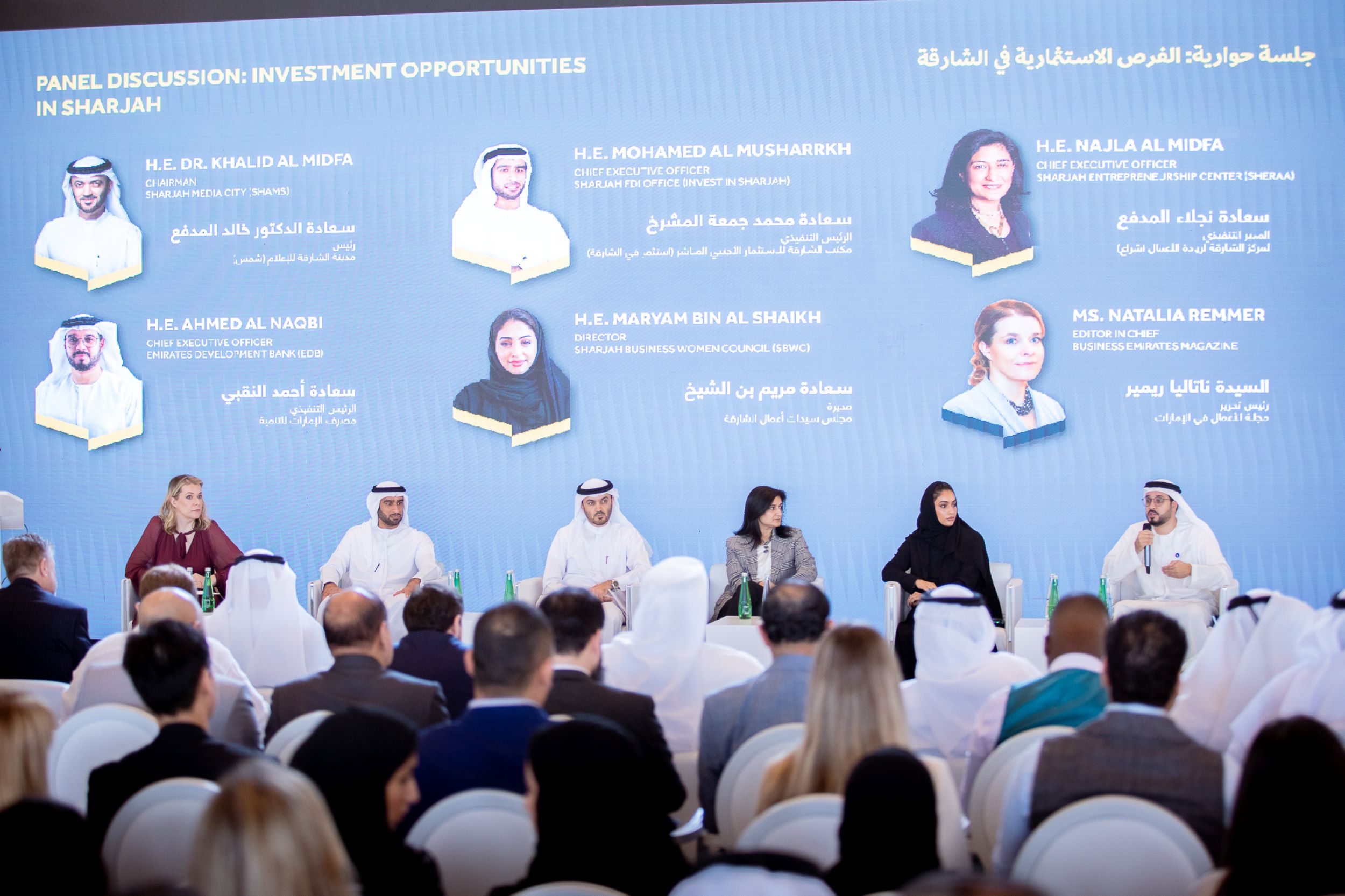 ونظمت "استثمر في الشارقة" جلسة حوارية بعنوان "الفرص الاستثمارية في الشارقة"، بمشاركة محمد جمعة المشرخ، المدير التنفيذي لمكتب الشارقة للاستثمار الأجنبي المباشر (استثمر في الشارقة)، والدكتور خالد عمر المدفع، رئيس مدينة الشارقة للإعلام (شمس)، وأحمد محمد النقبي، الرئيس التنفيذي لمصرف الإمارات للتنمية، ونجلاء المدفع، المدير التنفيذي لمركز الشارقة لريادة الأعمال (شراع) ومريم بن الشيخ، مديرة مجلس سيدات أعمال الشارقة، وسلطت الجلسة الضوء على بيئة الشارقة الاستثمارية الملائمة للأعمال وخدمات الدعم المتاحة للمستثمرين، كما وسهولة ممارسة الأعمال التجارية في الشارقة.