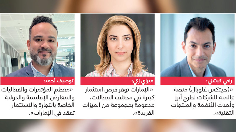 وقال المدير العام لشركة «إكسبيرينس للاستثمار»، فريد غسان، إن «الإمارات أصبحت وجهة رئيسة للمؤتمرات والفعاليات الخاصة بالاستثمار والتجارة والتكنولوجيا في المنطقة والعالم، خصوصاً في ضوء سياستها لجذب الاستثمار الأجنبي، وفرص الاستثمار الكبيرة التي تقدمها في مختلف المجالات»، مشيراً إلى أن «الإمارات تعد مركزاً رئيساً للشركات، خصوصاً الناشئة للانطلاق بأعمالها إلى العالمية، ما يجعلها تستضيف سنوياً عدداً من أكبر وأهم المؤتمرات والفعاليات الاقتصادية بشكل متزامن». وأشار في هذا الصدد، إلى أن الكثير من الشركات تقبل على الاستثمار في الإمارات، نظراً للمناخ الآمن والاستقرار الذي تتميز به والتسهيلات الخاصة بالاستثمار وقلة الضرائب واستراتيجيتها الخاصة بدعم الابتكار والتكنولوجيا وجذب المواهب وتطوير الاقتصاد الرقمي، متوقعاً أن تستمر الإمارات في جذب المزيد من الاستثمارات الأجنبية خلال السنوات المقبلة، خصوصاً في مجالات الاقتصاد الجديد والتكنولوجيا والابتكار.