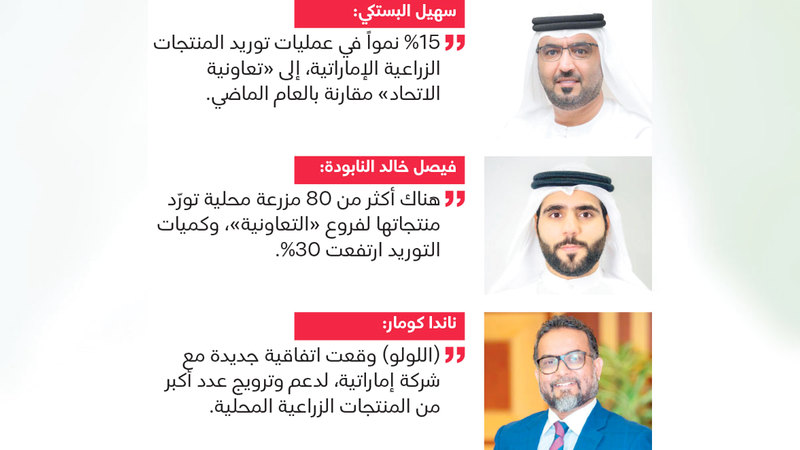 وتابع: «شهدت المنتجات الزراعية الإماراتية نمواً في عمليات التوريد للتعاونية بنسب وصلت إلى 15%، مقارنة بالعام الماضي، مع وصول عدد المزارع التي تعمل على التوريد لمنافذ (التعاونية) إلى نحو 65 مزرعة محلية أخيراً، وذلك مع اعتماد معايير مشددة حول جودة المنتجات المورّدة، وهو ما يؤشر إلى مواكبة المزارع المحلية لمعايير الجودة بشكل مستمر».