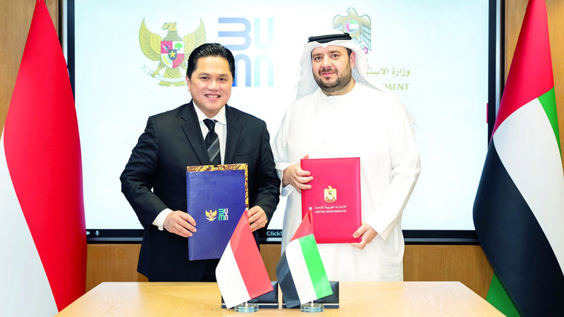 ووقّع مذكرة التفاهم وزير الاستثمار، محمد حسن السويدي، ووزير الشركات المملوكة للدولة في جمهورية إندونيسيا، أيريق طاهر.