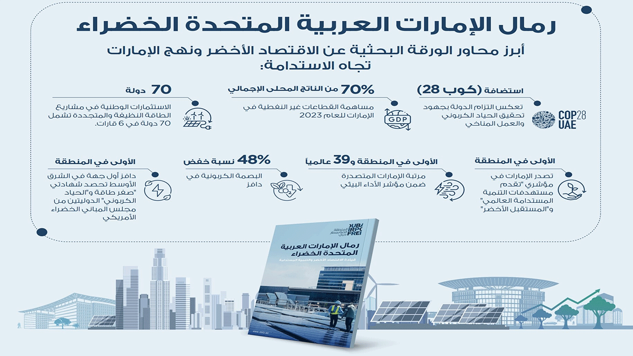 وأشارت الورقة البحثية التي أصدرتها "دافز" إلى أن مساهمة القطاعات غير النفطية في الناتج المحلي الإجمالي بلغت 70% في عام 2023، ويأتي ذلك بفضل توجيهات القيادة الرشيدة في تعزيز التحول العالمي نحو الاقتصاد الأخضر المستدام، والاستثمارات الوطنية الكبرى في مشاريع الطاقة النظيفة والمتجددة والتي تشمل 70 دولة في 6 قارات.