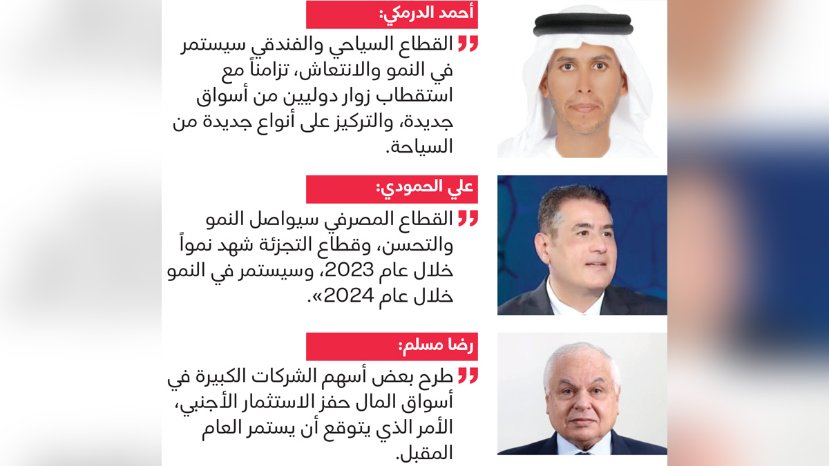 وقال الخبير الاقتصادي أحمد الدرمكي، إن «القطاعات الرئيسة الداعمة للاقتصاد ستشهد نمواً ملحوظاً خلال عام 2024».