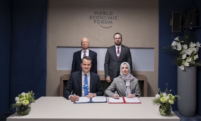 تم توقيع الاتفاقية ضمن أعمال الدورة الرابعة والخمسين للمنتدى الاقتصادي العالمي المنعقدة في مدينة دافوس في سويسرا، بحضور وزير شؤون مجلس الوزراء محمد عبد الله القرقاوي، و مؤسس ورئيس المنتدى الاقتصادي العالمي البروفيسور كلاوس شواب، ووقعها كل من مساعد وزير شؤون مجلس الوزراء لشؤون الاستراتيجية هدى الهاشمي، ورئيس البحوث الاستراتيجية، بالمنتدى الاقتصادي العالمي ستيفان ميرجينثالر.