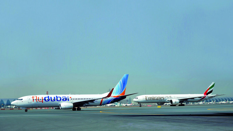 «طيران الإمارات» و«فلاي دبي» تشغلان 348 طائرة. أرشيفية