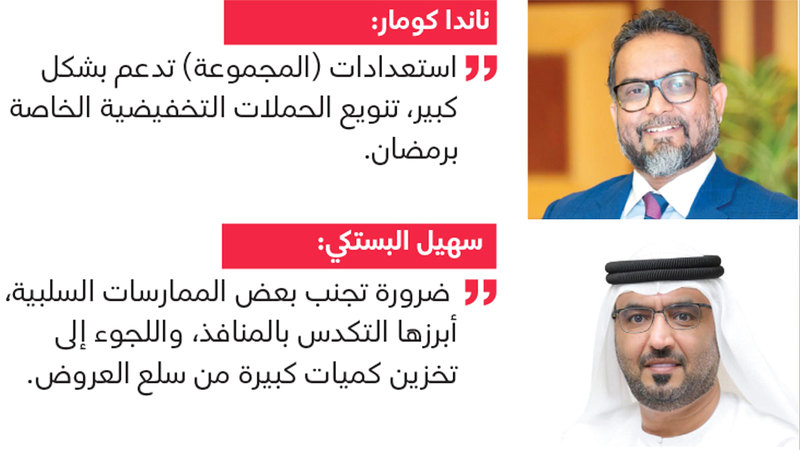 وقالوا، لـ«الإمارات اليوم»، إنهم عملوا على تنفيذ خطط الاستعداد لشهر رمضان على مراحل زمنية مبكرة، والاستمرار في إنجازها حتى الوقت الحالي، لافتين إلى أن أبرز المحاور ترتكز على توفير مخزون كافٍ من السلع ذات الطلب المرتفع خلال رمضان، والعمل على تنفيذ اتفاقيات توريد موسّعة، مع تنويع مصادر التوريد، لضمان وفرة المعروض، وإتاحة أسعار مخفضة بنسب كبيرة ضمن العروض المطروحة.