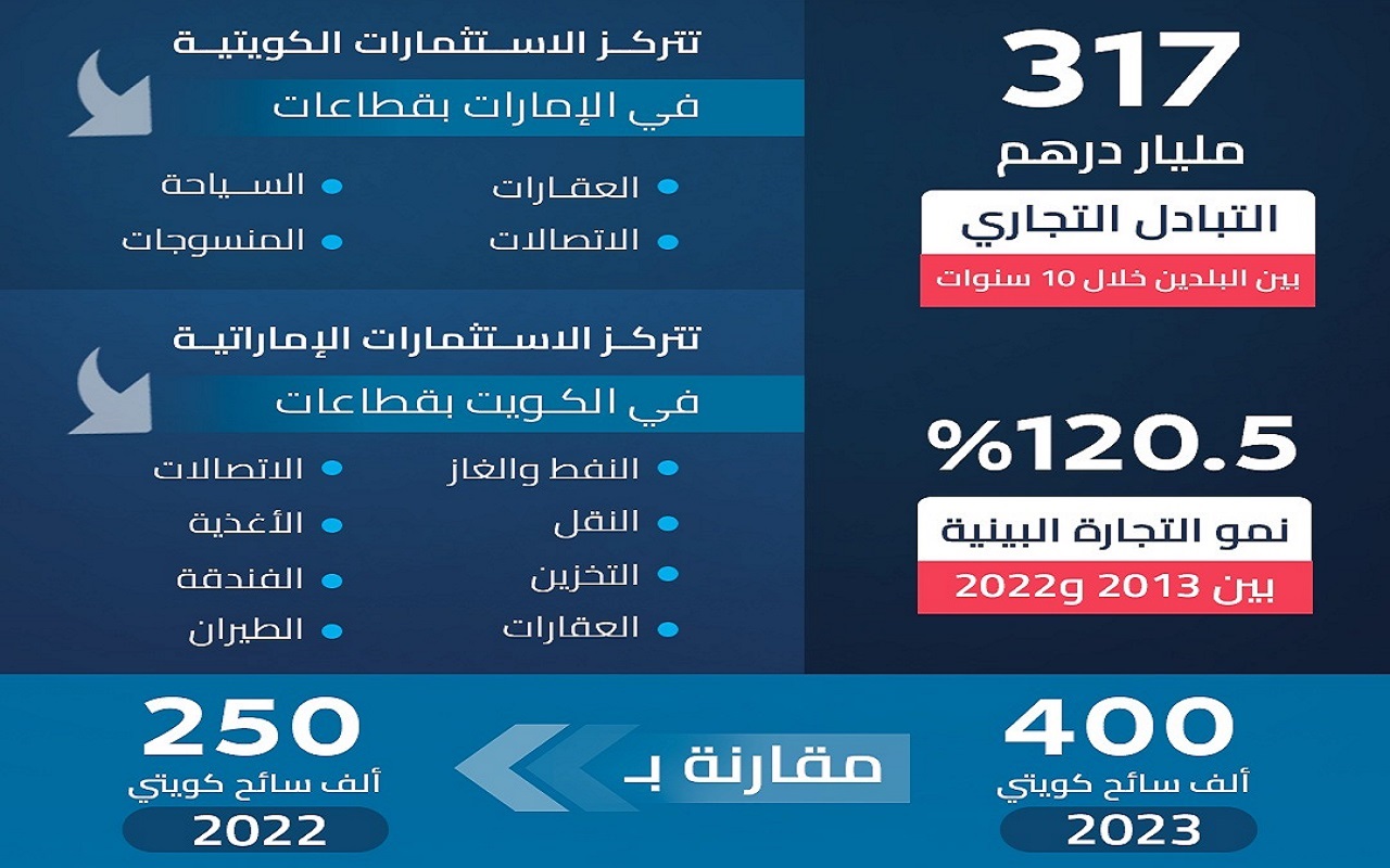317 مليار درهم حجم التبادل التجاري بين الإمارات والكويت في 10 سنوات