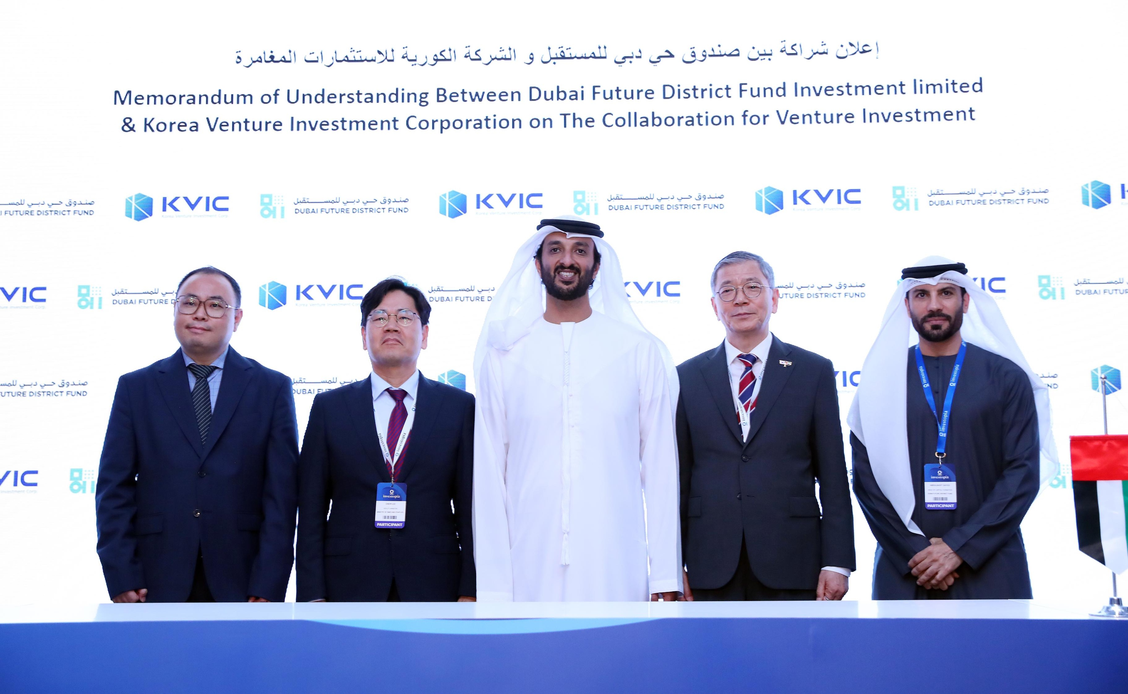 أما الاتفاقية الموقعة بين "صندوق حي دبي للمستقبل DFDF" وبين "مؤسسة كوريا للاستثمارات المغامرة KVIC" فتهدف إلى تعزيز التعاون بين الطرفين في مجال الاستثمارات المغامرة، وتشارُك الرؤى والخبرات حول الشركات الناشئة وتعزيز توسعهما ونموهما العالمي، فضلاً عن تبادل دعوات المشاركة في الفعاليات الدولية ذات الصلة.