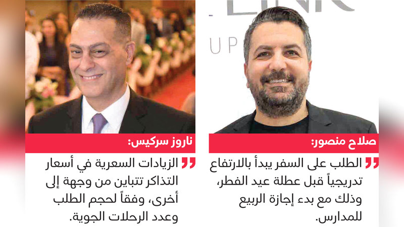بدوره، قال المدير العام لـ«شركة بالحصا للسياحة»، ناروز سركيس: إن «الزيادات في أسعار تذاكر الطيران خلال فترات الذروة أمر معتاد عليه كل عام»، مشيراً إلى أن «نسبة كبيرة من الراغبين بالسفر خلال هذه الأوقات عادة ما يلجأون إلى الحجز المبكر، لتفادي هذه الزيادات».