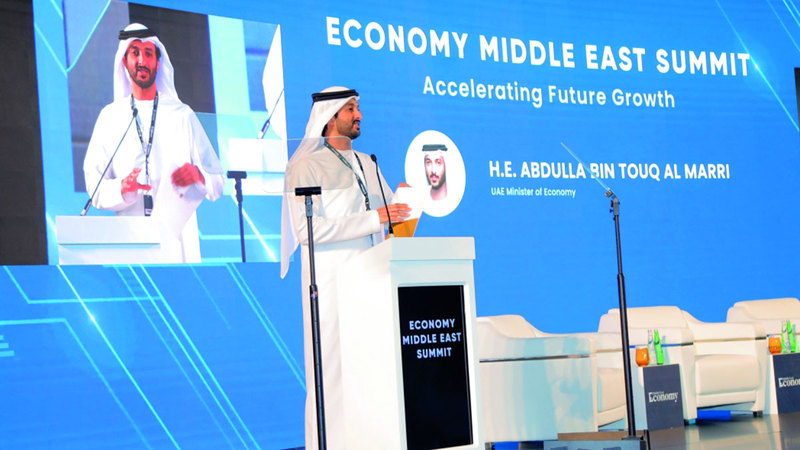 بن طوق خلال افتتاح قمة «إيكونومي ميدل إيست 2024». من المصدر