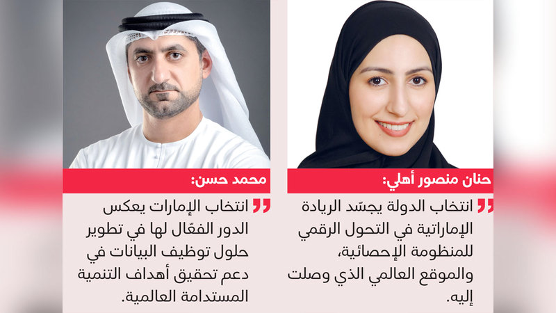 من جهته، أكد المدير التنفيذي لقطاع الإحصاء وعلوم البيانات في المركز، محمد حسن، أن انتخاب الإمارات لتكون الدولة الخليجية الوحيدة في اللجنة الإحصائية للأمم المتحدة، يعكس الدور الفعّال لها في تطوير حلول توظيف البيانات في دعم تحقيق أهداف التنمية المستدامة العالمية، من خلال احتضانها المركز الإقليمي لمنصة الأمم المتحدة للبيانات الضخمة الخاصة بأهداف التنمية المستدامة، الهادفة إلى دعم بناء قدرات المجتمع الإحصائي في منطقة الشرق الأوسط وشمال إفريقيا، وتوظيف البيانات الضخمة وتقنيات الذكاء الصناعي في تطوير قطاع الإحصاء.
