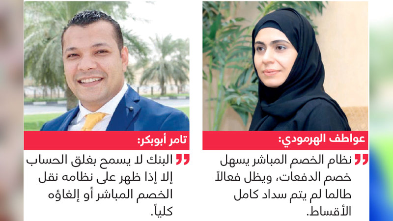وقالت الخبيرة المصرفية عواطف الهرمودي: «تم توفير نظام الخصم المباشر لتسهيل خصم الدفعات، ويظل فعالاً طالما لم يتم سداد كامل الأقساط، لذلك، إذا رغب المتعامل في نقل حسابه إلى بنك آخر، أو غلق الحساب القديم، فعليه أن يلغي (نظام الخصم المباشر)، أو ينقله إلى البنك الجديد، ومن ثم يباشر الإجراءات المعتادة لغلق الحساب».
