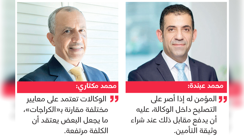 في المقابل، قال المدير العام لشركة «الغرير للسيارات»، محمد مكتاري: «يَعتبر بعض شركات التأمين كلفة الإصلاح في ورش وكالات السيارات مرتفعة مقارنة بالإصلاح في الكراجات العادية، ويعود السبب وراء ذلك إلى الفروق الكبيرة في جودة الإصلاح والصيانة، إضافة إلى توافر العمالة المدربة والمؤهلة بشكل معتمد، واستخدام قطع غيار أصلية ومضمونة، والتي توفر بدورها مقومات الأمان والسلامة التي تعد من الأمور المهمة، مع إنجاز عملية الإصلاح المطلوبة».