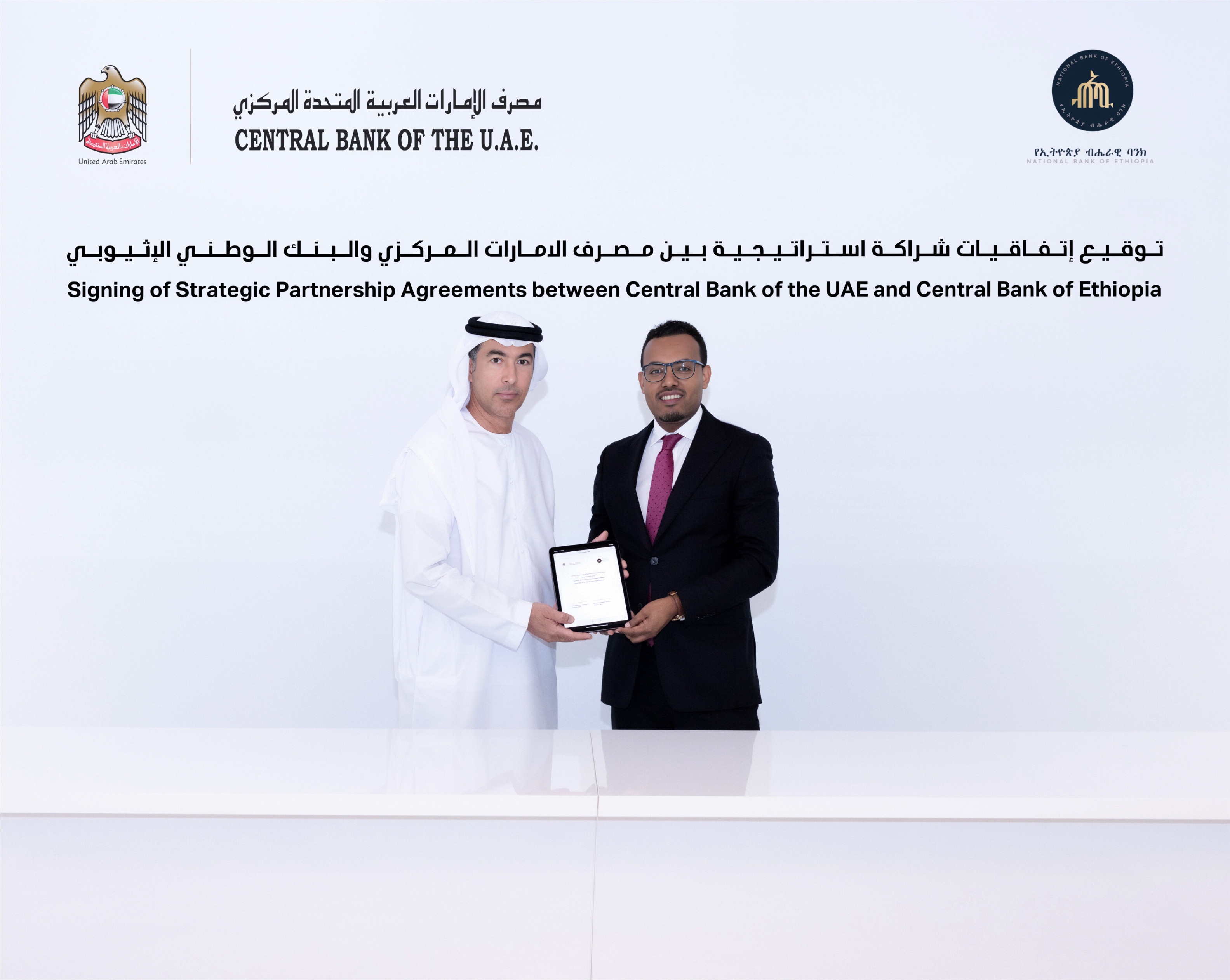 وقّع معالي خالد محمد بالعمى، محافظ مصرف الإمارات العربية المتحدة المركزي، ومعالي مامو ميهريتو، محافظ البنك الوطني الإثيوبي، اتفاقية ثنائية لمقايضة الدرهم الإماراتي والبير الإثيوبي، ومذكرتي تفاهم لإرساء إطار تعزيز استخدام العملات المحلية في تسوية المعاملات عبر الحدود، وربط أنظمة الدفع والمراسلات المالية بين البلدين.