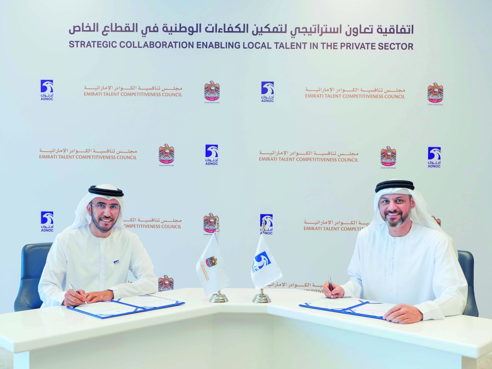 وقعت "أدنوك" ومجلس تنافسية الكوادر الإماراتية "نافس"، مذكرة تفاهم لتوفير 13.5 ألف فرصة عمل جديدة للكوادر الوطنية في شركات القطاع الخاص العاملة ضمن سلسلة توريد أعمال وأنشطة "أدنوك" بحلول عام 2028، بما يدعم هدف دولة الإمارات بتوفير 100 ألف فرصة وظيفية جديدة للمواطنين في القطاع الخاص خلال الأعوام الثلاثة القادمة.