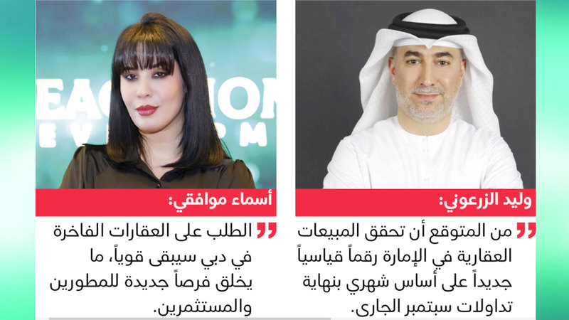 وتوقعت استمرار سوق دبي العقارية بالتوسع والنمو، خصوصاً مع استمرار تدفق الاستثمارات الدولية وتطوير المشاريع الكبرى، ما يعزز مكانة الإمارة مركزاً رئيساً للفرص العقارية في المنطقة، كما توقعت أن يحقق سبتمبر الجاري رقماً قياسياً في المبيعات العقارية على أساس شهري.