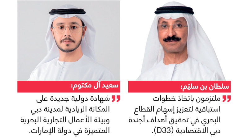 وعن حفاظ دبي على مكانتها في المركز الخامس عالمياً للسنة الخامسة على التوالي، أكد الشيخ الدكتور سعيد بن أحمد بن خليفة آل مكتوم، أن ذلك يعد شهادة دولية جديدة على المكانة الريادية لمدينة دبي وبيئة الأعمال التجارية البحرية المتميزة في دولة الإمارات، التي تتجه نحو المزيد من التعزيز والتمكين مع تطبيق أفضل الممارسات العالمية للقطاع البحري والملاحي.