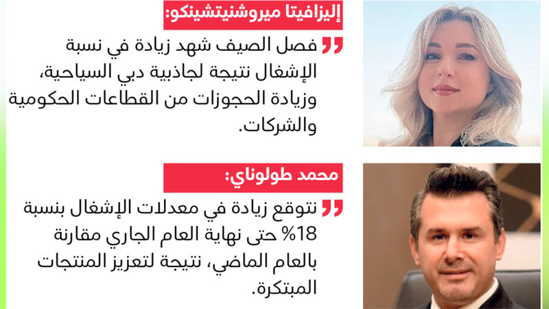 قال مسؤولو فنادق إن صيف 2024 شهد نمواً في معدلات الإشغال الفندقي بنسب وصلت إلى 50% مقارنة بالفترة نفسها من العام الماضي، مدفوعة بعوامل الاستقرار وتنامي مكانة دولة الإمارات وجهة سياحية مفضلة، وترسيخ دبي مركزاً سياحياً عالمياً رئيساً تستقبل ملايين السياح سنوياً، وطرح عروض استهدفت أسواقاً جديدة، وإضافة مرافق جديدة، وتوافر الإقامات من الفئات المتوسطة والاقتصادية، واستضافة معارض وفعاليات كبرى.