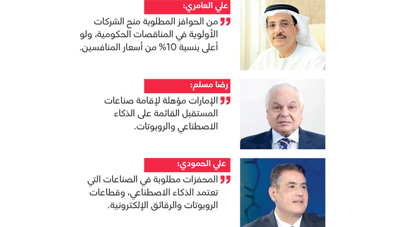 وأكد مسلم، أن «الإمارات مؤهلة لإقامة صناعات المستقبل، وهي الصناعات الحديثة غير التقليدية التي تعتمد على التكنولوجيا الحديثة والقائمة على الذكاء الاصطناعي والروبوتات، والمشروعات التي تعتمد على الأيدي العاملة الماهرة، وليست كثيفة العمالة، خصوصاً في ظل البنية التحتية المتطورة، ووجود العديد من المناطق الحرة والموقع الاستراتيجي والبنية التشريعية الجاذبة وتسهيلات الاستثمار».