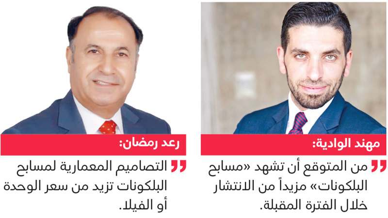 وقال رئيس مجلس إدارة شركة «الوليد الاستثمارية»، محمد المطوع، إن «المسابح في الشرفات انتشرت في الفترة الأخيرة، لكنها تحتاج إلى صيانة بشكل دوري وتكون كلفتها عالية».