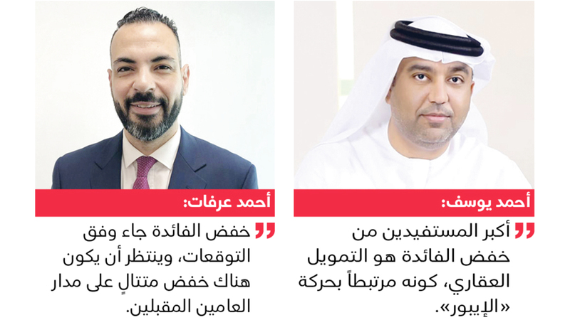من جانبه، قال الخبير المصرفي أحمد عرفات، إن «تخفيض الفائدة جاء وفق التوقعات وينتظر أن يكون هناك خفض متتالٍ على مدار العامين المقبلين، بعد تحسن معدلات التضخم، إلى حد كبير، لذا ينتظر أن تشهد سوق التمويل، خصوصاً العقارية، طلباً كبيراً يحرك عمليات البيع والشراء بشكل أكبر، ومن وراء ذلك انتعاش كل القطاعات الاقتصادية المرتبطة بالعقار».