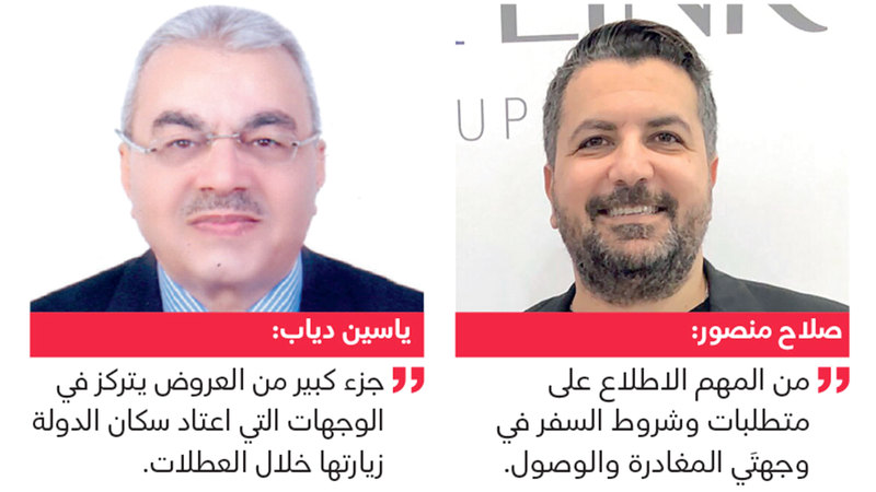 وبيّن دياب أن بعض العروض الترويجية، التي طرحتها شركات الطيران ووكالات سفر، تتركز في وجهات لا تتطلب تأشيرة مسبقة بالنسبة لسكان الدولة.