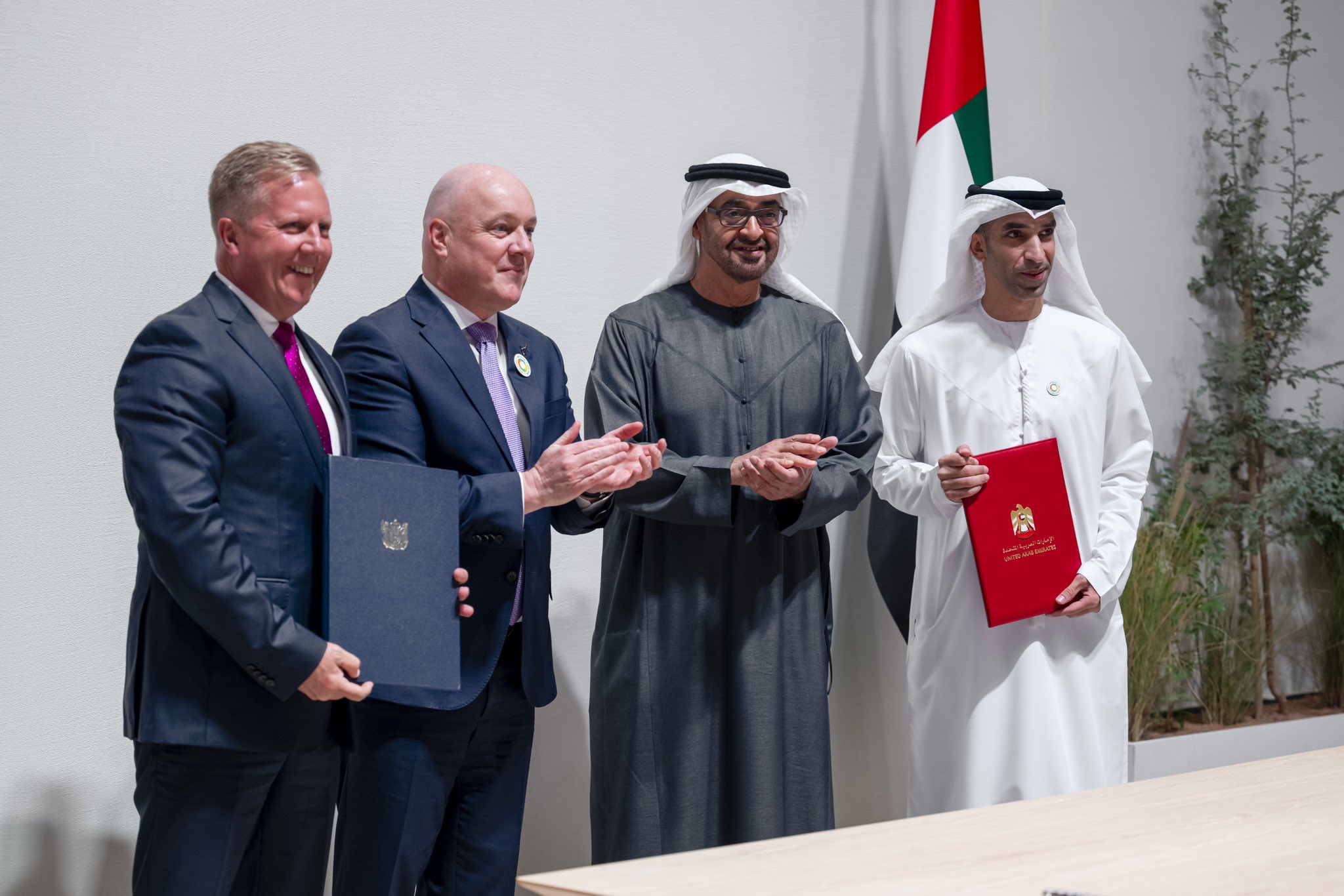 شهد صاحب السمو الشيخ محمد بن زايد آل نهيان رئيس الدولة "حفظه الله" مع رئيس الوزراء كريستوفر لاكسن، في أبوظبي، مراسم توقيع اتفاقية الشراكة الاقتصادية الشاملة بين الإمارات ونيوزيلندا.
