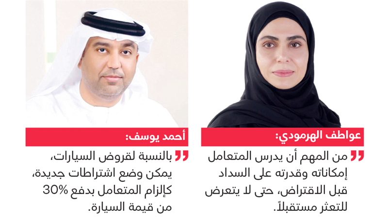 وأوضح يوسف أنه «بالنسبة لقروض السيارات، يمكن وضع اشتراطات جديدة، مثلاً إذا كانت السيارة جديدة، فيمكن زيادة مدة السداد إلى ست أو سبع سنوات، خصوصاً بالنسبة للسيارات المرتفعة السعر التي سيكون قسطها مرتفعاً، ما يسبب عبئاً مادياً على الأفراد، لكن في هذه الحالة يمكن إلزام المتعامل دفع نسبة 30% من قيمة السيارة مثلاً، وترك الحرية له لسداد بقية المبلغ حتى سبع سنوات، مع الأخذ في الاعتبار أن نسبة المخاطر في تمويل السيارات أقل، كونها مرهونة للبنك».