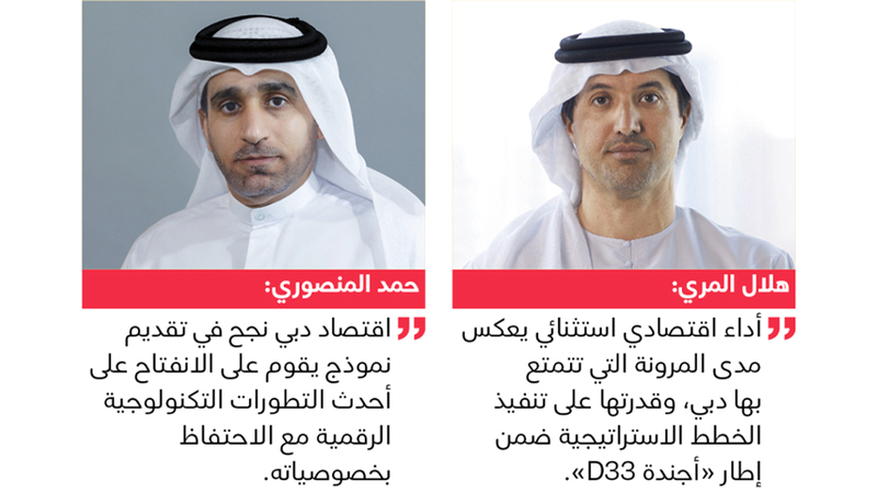 وأضاف: «لقد نجح اقتصاد دبي في تقديم نموذج يقوم على الانفتاح على أحدث التطورات التكنولوجية الرقمية والتوجهات العالمية، مع الاحتفاظ بخصوصياته التي راكمها عبر المراحل التاريخية، وبهذا المزيج من الخصائص المحلية والعالمية يدخل اقتصاد دبي إلى مرحلة صنع المستقبل، مانحاً المزيد من الثقة للمستثمرين وأصحاب المواهب والمبتكرين الباحثين عن بيئة أعمال تمتاز بالمرونة والديناميكية والاعتمادية».