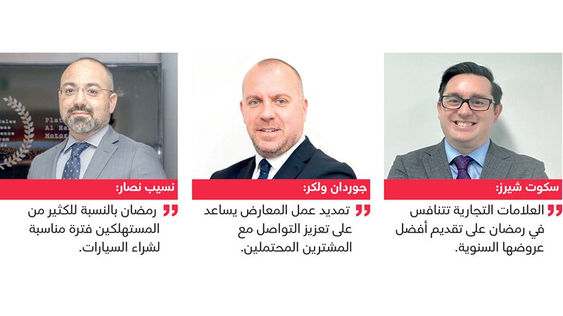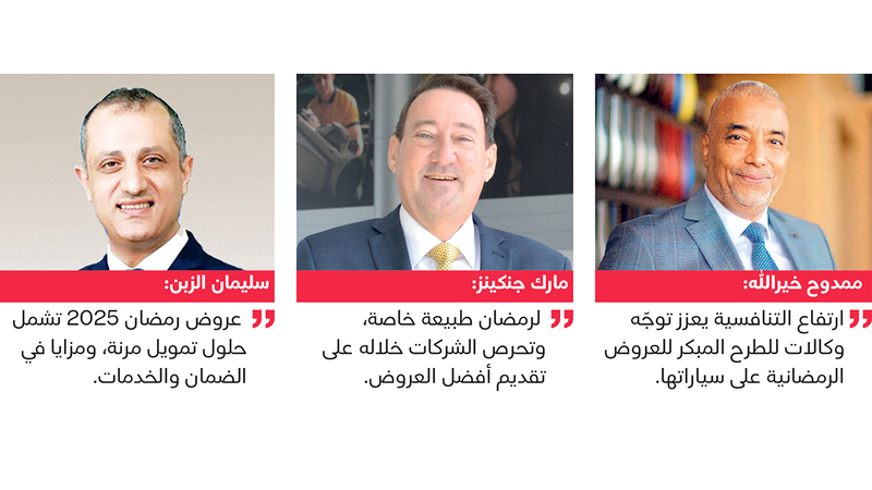 ولفت إلى أن «الشركة» تحرص على تقديم عروض في شهر رمضان الذي يشهد إقبالاً على شراء مركبات جديدة، ما يدفع الوكالات إلى تقديم عروض تتناسب مع روح الموسم الرمضاني، عبر منح المستهلكين قيمة إضافية وجعل عملية شراء السيارات تجربة مُجزية وأكثر فائدة، فضلاً عن أن سوق السيارات تشهد منافسة شديدة خلال هذا الشهر، لجذب المزيد من المشترين، وتعزيز الولاء للعلامة التجارية وتوسيع حضورها في الأسواق.