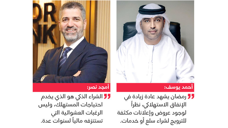 وشدد يوسف على أن «رمضان يشهد عادة زيادة في الإنفاق الاستهلاكي، نظراً لوجود عزائم وولائم وعروض وإعلانات كثيرة ومكثفة للترويج لشراء سلع أو خدمات، قد يكون الشخص ليس في حاجة إليها»، مشيراً إلى ضرورة وجود ثقافة مالية ووعي وفهم لدى (رب الأسرة) بأنه مسؤول عن الإنفاق على أسرته، ولابد أن يحدد أولويات إنفاقه، بما يلائم ظروفه الشخصية والعائلية، خاصة أن هناك التزامات أساسية لها أولوية، مثل دفع قسط المنزل وأقساط المدارس وغيرها.