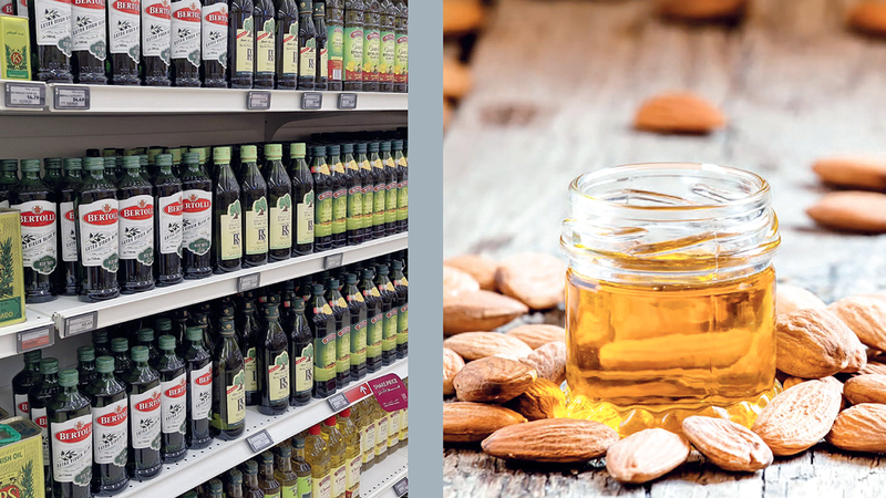 كما تتوافر في الأسواق زيوت ثنائية الاستخدام، إذ تستخدم في الطعام، وفي الطب البديل والعناية بالشعر والوجه، مثل زيت بذور اليقطين، واليقطين العضوي الذي يتجاوز سعر الـ100 مللي من كل منهما 150 درهماً، فضلاً عن زيت الفول السوداني، وزيت الأفوكادو، وزيت جوز الهند، وزيت الخردل، وزيت اللوز، وزيت السمسم، وزيت الحبة السوداء.