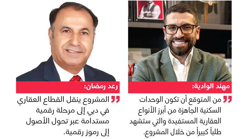 بدوره، قال المدير العام في «شركة عوض قرقاش للعقارات»، رعد رمضان، إن مشروع الترميز العقاري يعد من المشاريع المتكاملة المرتبطة بالتوجهات المستقبلية المبتكرة في قطاع العقارات عبر الربط بالحوكمة والرموز الرقمية في أنظمة الـ«بلوك تشين» من خلال إتاحة تملك الأفراد بالاشتراك في ملكية عقار عبر شراء الرمز العقاري.