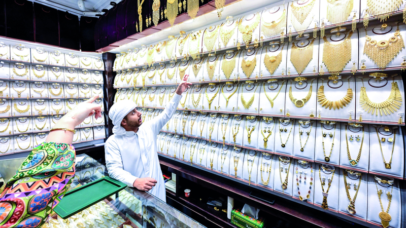 سعر غرام الذهب من عيار 24 قيراطاً بلغ 383.25 درهماً. تصوير: باتريك كاستيلو