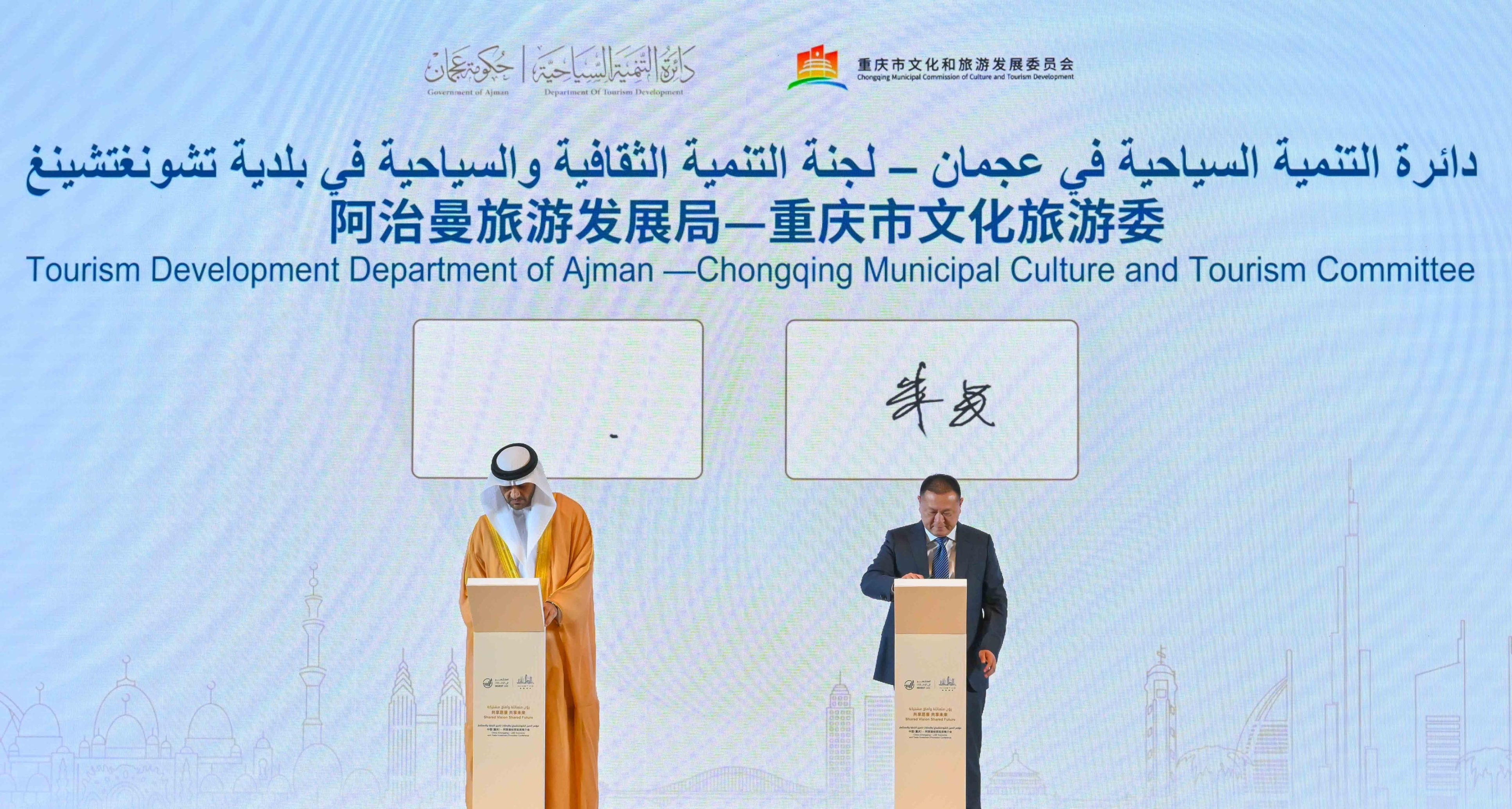 وقعت دائرة التنمية السياحية في عجمان ولجنة التنمية الثقافية والسياحية في بلدية تشونغتشينغ بجمهورية الصين الشعبية بحضور سمو الشيخ عمار بن حميد النعيمي، ولي عهد عجمان رئيس المجلس التنفيذي، والشيخ عبدالعزيز بن حميد النعيمي، رئيس دائرة التنمية السياحية في عجمان، ، مذكرة تفاهم، في إطار جهود الإمارة لتعزيز حضورها الدولي وترسيخ علاقاتها الاستراتيجية مع المدن العالمية الرائدة، وذلك ضمن فعاليات مؤتمر الصين (تشونغتشينغ) والإمارات لتعزيز التجارة والاستثمار، المنعقد تحت شعار "رؤى متماثلة وآفاق مشتركة".