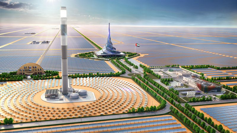مجمع محمد بن راشد آل مكتوم للطاقة الشمسية يعد أهم مشروعات تحقيق استراتيجية دبي للطاقة النظيفة 2050. من المصدر