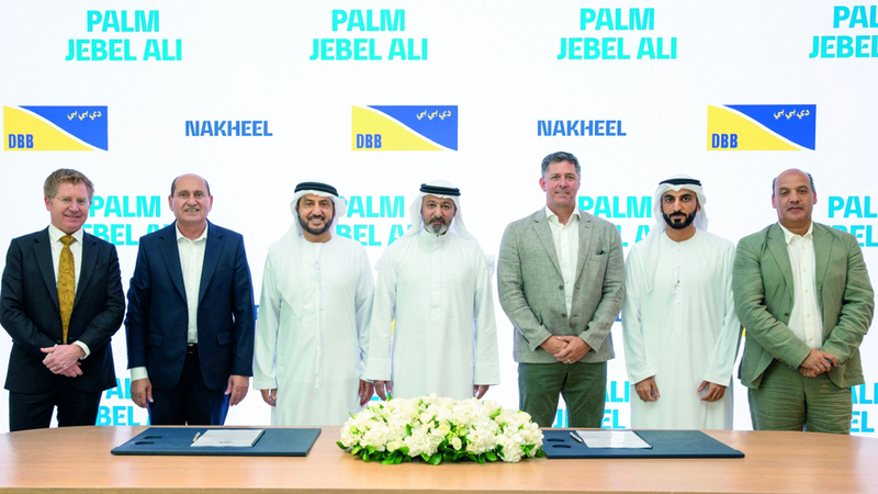 خلال حفل ترسية العقود الرئيسة الخاصة بالأعمال الإنشائية في «نخلة جبل علي». من المصدر