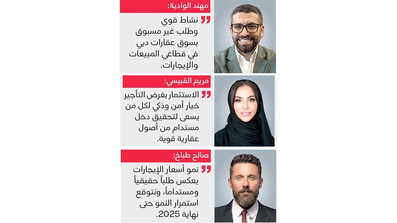 من جهته، أكد الرئيس التنفيذي لـ«مجموعة الأندلس العقارية»، صالح طباخ، أن ارتفاع الإيجارات في دبي جاء نتيجة التزايد الكبير في عدد السكان، وانتقال آلاف العائلات الوافدة حديثاً إلى الإمارة، حيث يُفضّل أكثر من 77% من الأجانب استئجار العقارات خلال السنوات الأولى من إقامتهم، خصوصاً العائلات التي تبحث عن المرونة قبل اتخاذ قرار الشراء.
