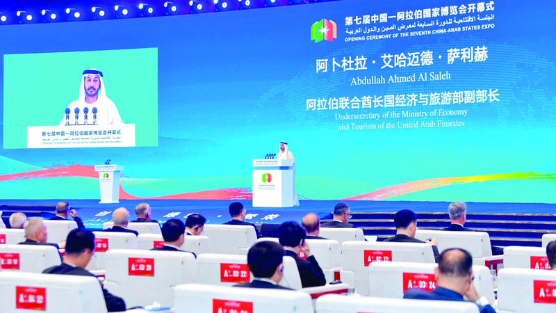 وتفصيلاً، شاركت دولة الإمارات ضيف شرف في النسخة السابعة لمعرض الصين والدول العربية، الذي عُقد في مدينة «ينشوان» الصينية، تحت عنوان «التركيز على التنمية الاقتصادية وتعزيز التعاون المتبادل»، خلال الفترة من 28 حتى 31 أغسطس الماضي، حيث استعرضت الدولة فرص تعزيز الشراكة الإماراتية الصينية في عدد من المجالات الحيوية التي تشمل الاقتصاد الجديد، والبنية التحتية، والطاقة، والتنمية الخضراء، والتصنيع المتقدم، والتكنولوجيا، والزراعة، والصناعات الغذائية، والسياحة، والمشاريع الصغيرة والمتوسطة وغيرها من القطاعات الواعدة، التي تمثل أولوية لمستقبل التنمية المستدامة في البلدين.