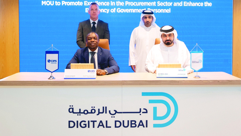 وقّعت هيئة دبي الرقمية مذكرة تفاهم مع «معهد تشارترد للمشتريات والتوريد» (CIPS)، بهدف تعزيز التميز في منظومة المشتريات الاستراتيجية ودعم التطوير المهني للكوادر العاملة في هذا المجال في الهيئة، ويُعد المعهد من أبرز المنظمات المهنية الدولية ومرجعية عالمية رائدة في وضع المعايير وأفضل الممارسات في المشتريات والتوريد.