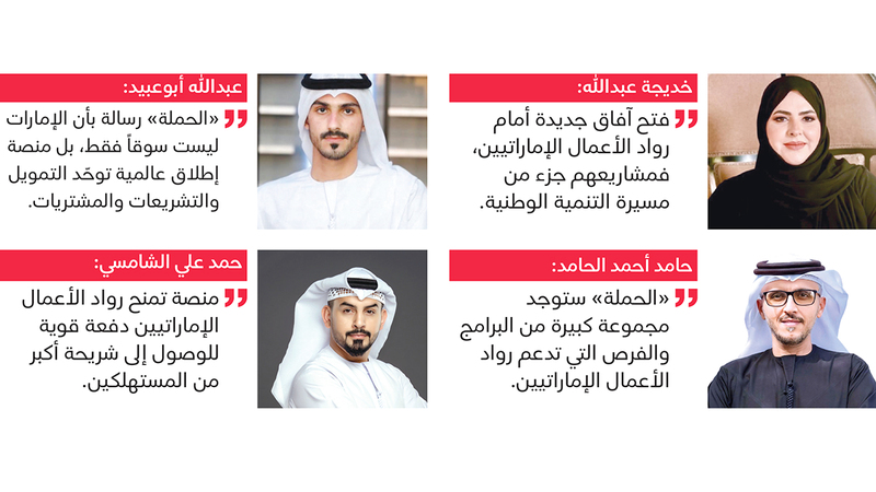 وأكدت أن «أهمية هذه الحملة تكمن في كونها تفتح آفاقاً جديدة أمام رواد الأعمال الإماراتيين، وتمنحهم الثقة بأن مشاريعهم جزء من مسيرة التنمية الوطنية».