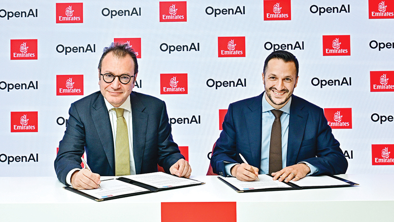 أعلنت «طيران الإمارات» وشركة «أوبن إيه آي» تعاوناً استراتيجياً يهدف إلى تعزيز تبنّي تقنيات الذكاء الاصطناعي والابتكار عبر مختلف عمليات الناقلة، وسيشمل هذا التعاون توظيف منصة «ChatGPT Enterprise» بشكل موسّع داخل المجموعة، إلى جانب تطوير برامج متخصصة لتعزيز مهارات الذكاء الاصطناعي، واستكشاف التقنيات المستقبلية، ومواءمة التوجّه الاستراتيجي للقيادات، بهدف دمج قدرات الذكاء الاصطناعي في بنية المجموعة التشغيلية.