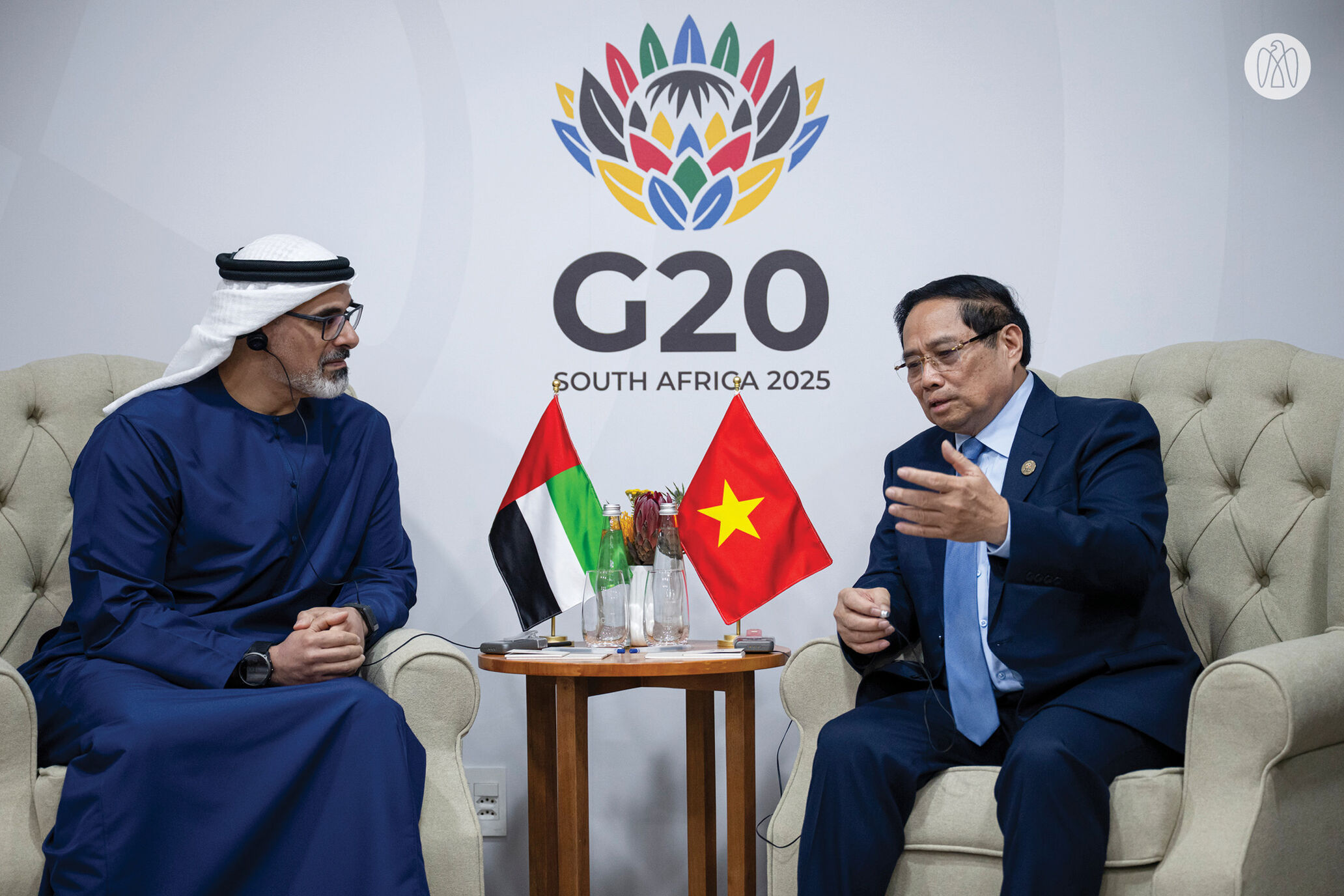 التقى سمو الشيخ خالد بن محمد بن زايد آل نهيان، ولي عهد أبوظبي، اليوم، رئيس وزراء جمهورية فيتنام الاشتراكية فام مينه تشينه،، على هامش أعمال قمة مجموعة العشرين المنعقدة في مدينة جوهانسبرغ بجمهورية جنوب إفريقيا.