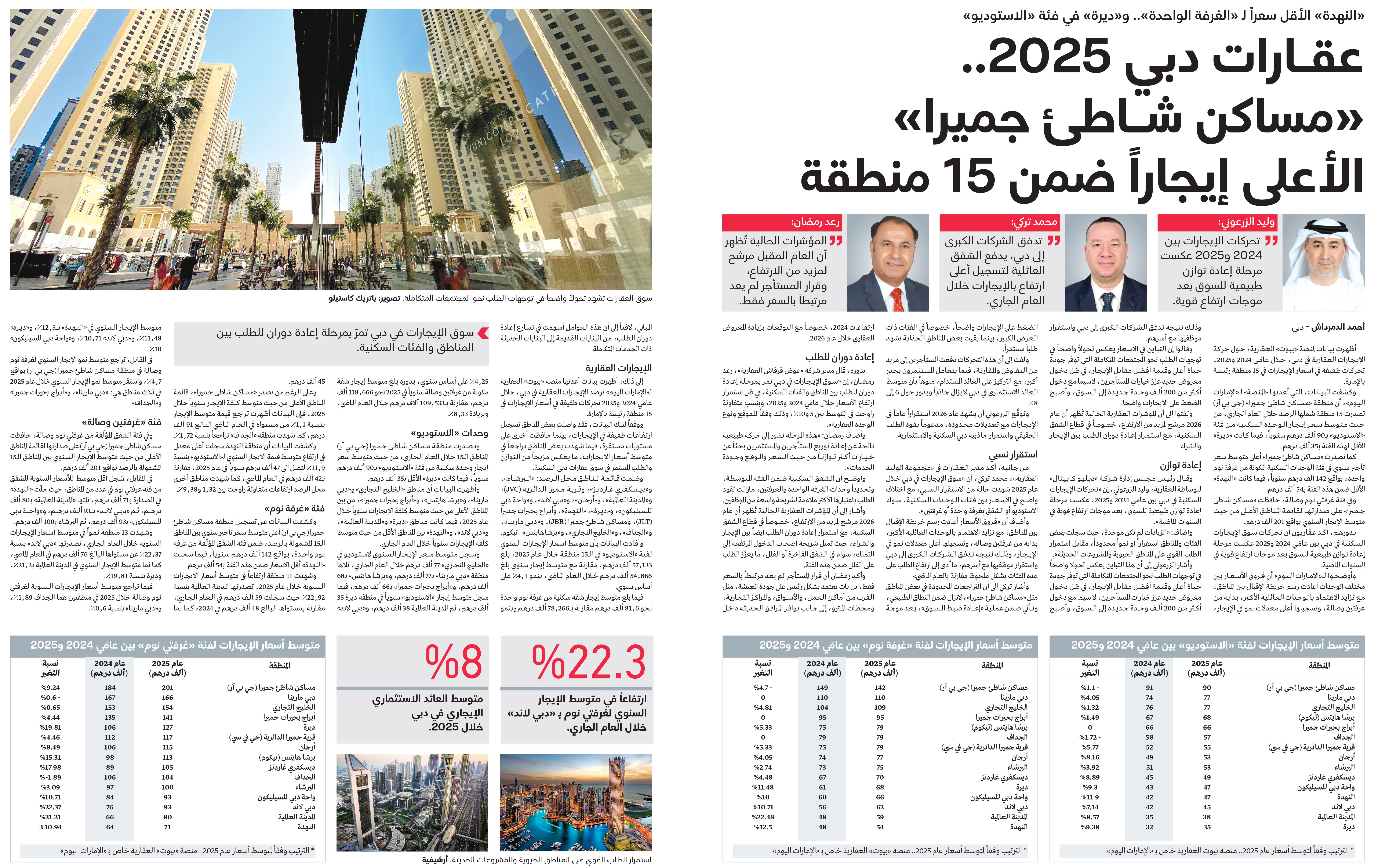 عقـــــارات دبي 2025.. «مساكن شــــــاطئ جميرا» الأعلى إيجاراً ضمن 15 منطقة