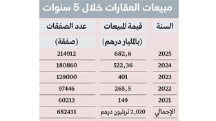 وأشار الزرعوني إلى أن السوق العقارية سلكت مساراً تصاعدياً واضحاً خلال السنوات الخمس الأخيرة، حيث تجاوز إجمالي المبيعات المسجلة تريليونَي درهم، بعد أن ارتفعت من 149 مليار درهم في عام 2021، إلى 265.5 مليار درهم في 2022، ثم 401 مليار درهم في 2023، وصولاً إلى 522.36 مليار درهم في 2024، ثم 682.6 مليار درهم في 2025، وذلك وفقاً للبيانات الصادرة عن دائرة الأراضي والأملاك في دبي.