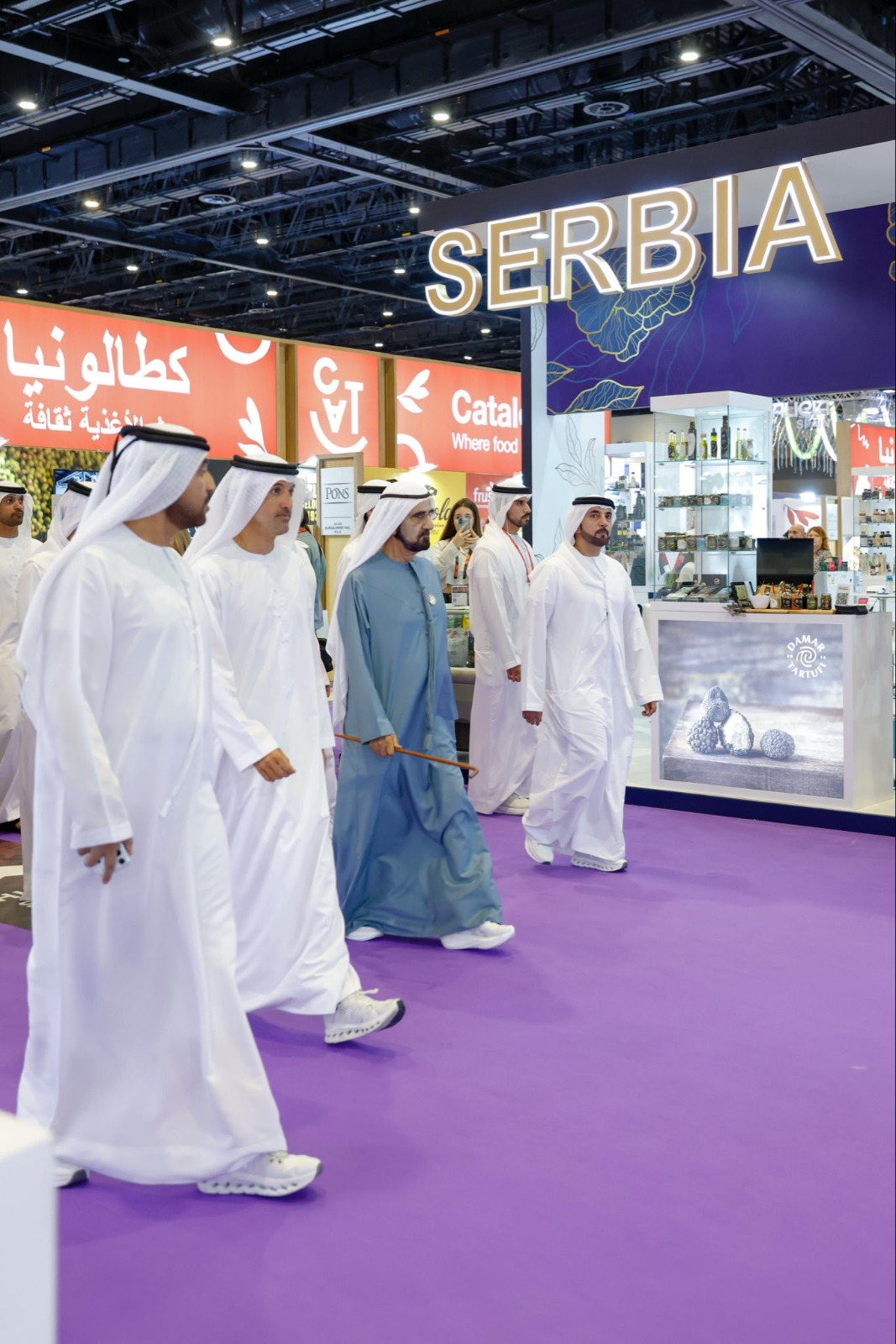 وحرص صاحب السموّ نائب رئيس الدولة رئيس مجلس الوزراء حاكم دبي، خلال زيارته لمركز دبي للمعارض (DEC) في مدينة إكسبو دبي، التي رافقه فيها سمو الشيخ مكتوم بن محمد بن راشد آل مكتوم، النائب الأول لحاكم دبي، نائب رئيس مجلس الوزراء، وزير المالية، و سموّ الشيخ أحمد بن محمد بن راشد آل مكتوم، النائب الثاني لحاكم دبي، وسمو الشيخ منصور بن محمد بن راشد آل مكتوم، رئيس اللجنة الأولمبية الوطنية، ومعالي هلال سعيد المرّي، المدير العام لسلطة مركز دبي التجاري العالمي ودائرة الاقتصاد والسياحة في دبي، على تفقّد عدد من أجنحة الدول المشاركة، اطّلع خلالها على أبرز ما تقدمه من منتجات غذائية وحلول مبتكرة تعكس تنوّع الأسواق العالمية، والدور المحوري للمعرض في دعم تجارة الغذاء وتعزيز كفاءة سلاسل الإمداد.