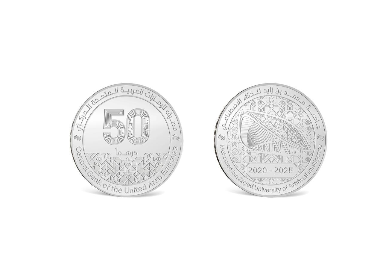 أصدر مصرف الإمارات العربية المتحدة المركزي مسكوكاتٍ تذكارية من الذهب والفضة احتفاءً بمرور خمس سنوات على تأسيس جامعة محمد بن زايد للذكاء الاصطناعي، واستقبالها الدفعة الأولى من طلبتها في عام 2020، وذلك تقديراً لما حققته من إنجازات بارزة خلال مسيرتها.