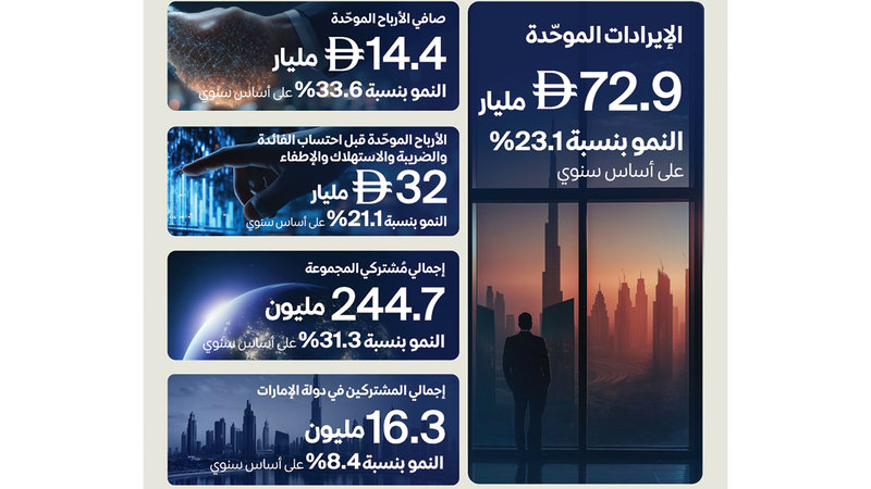 وعلى صعيد المشتركين، نمت قاعدة مشتركي المجموعة عالمياً لتصل إلى 244.7 مليون مشترك، وهو ما يشكل زيادة سنوية بنسبة 31.3%، وفي دولة الإمارات بلغ عدد مشتركي «إي آند الإمارات» 16.3 مليوناً، وهو ما يشكل زيادة سنوية بنسبة 8.4%، مدفوعاً بالطلب المتزايد على حلول الاتصال المتقدمة والخدمات المدعومة بالذكاء الاصطناعي، والتجارب الرقمية المصممة لتلبية الاحتياجات المتطورة لجميع عملاء الشركة من الأفراد والشركات.