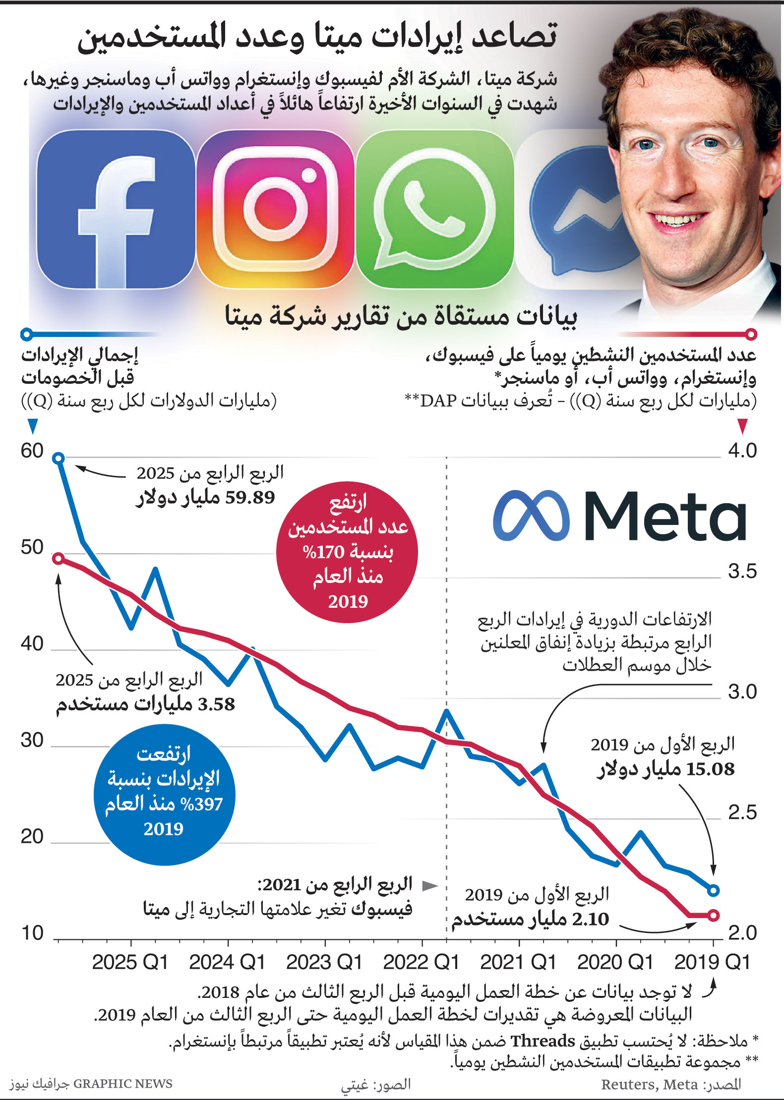 تويتر لينكدين تويتر فيسبوك تصاعد إيرادات ميتا وعدد المستخدمين المصدر: إعداد: أحمد الشربيني التاريخ: 03 أبريل 2026 تابعوا آخر أخبارنا المحلية والرياضية وآخر المستجدات السياسية والإقتصادية عبر Google news Share فيسبوك تويتر لينكدين Pin Interest Whats App