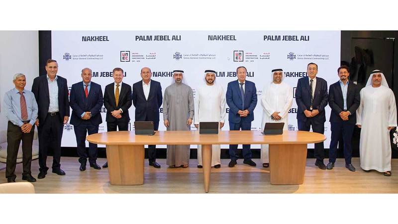 من جانبه، أكد مؤسس ورئيس مجلس إدارة شركة «جينكو للمقاولات العامة»، غياث محمد غياث، التزام إنجاز المشروع وفقاً لأعلى المعايير، كما أكد رئيس مجلس إدارة شركة تمثل اتحاد الهندسة الإنشائية، المهندس عبدالحليم موحد، التزام الشراكة الاستراتيجية مع «نخيل»، ومواصلة العمل جنباً إلى جنب نحو تحقيق المزيد من النجاحات والإنجازات المستقبلية.