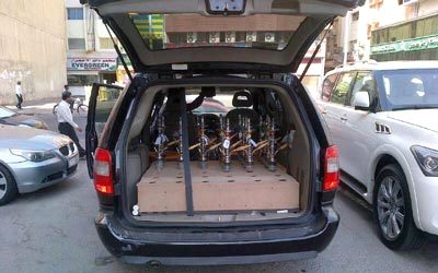 البائع صنع منصة لعرض الشيشة ولوازمها داخل السيارة. من المصدر
